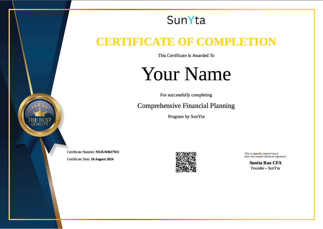 After completing the course, you’ll receive a shareable digital certificate that you can proudly add to your LinkedIn profile, resume, or portfolio. It’s proof of your commitment to mastering financial planning.
